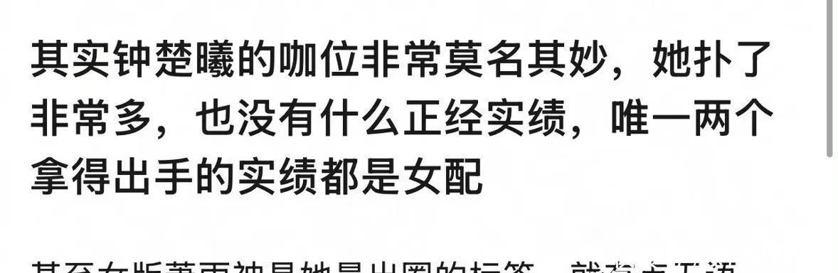 而绯闻八卦的热度盖过作品讨论,更让“来娱乐圈谈恋爱”的调侃成了挥之不去的烙印。当“没有代表作”的质疑声越来越响,“钟楚曦该退圈吗”的讨论自然随之而来。
